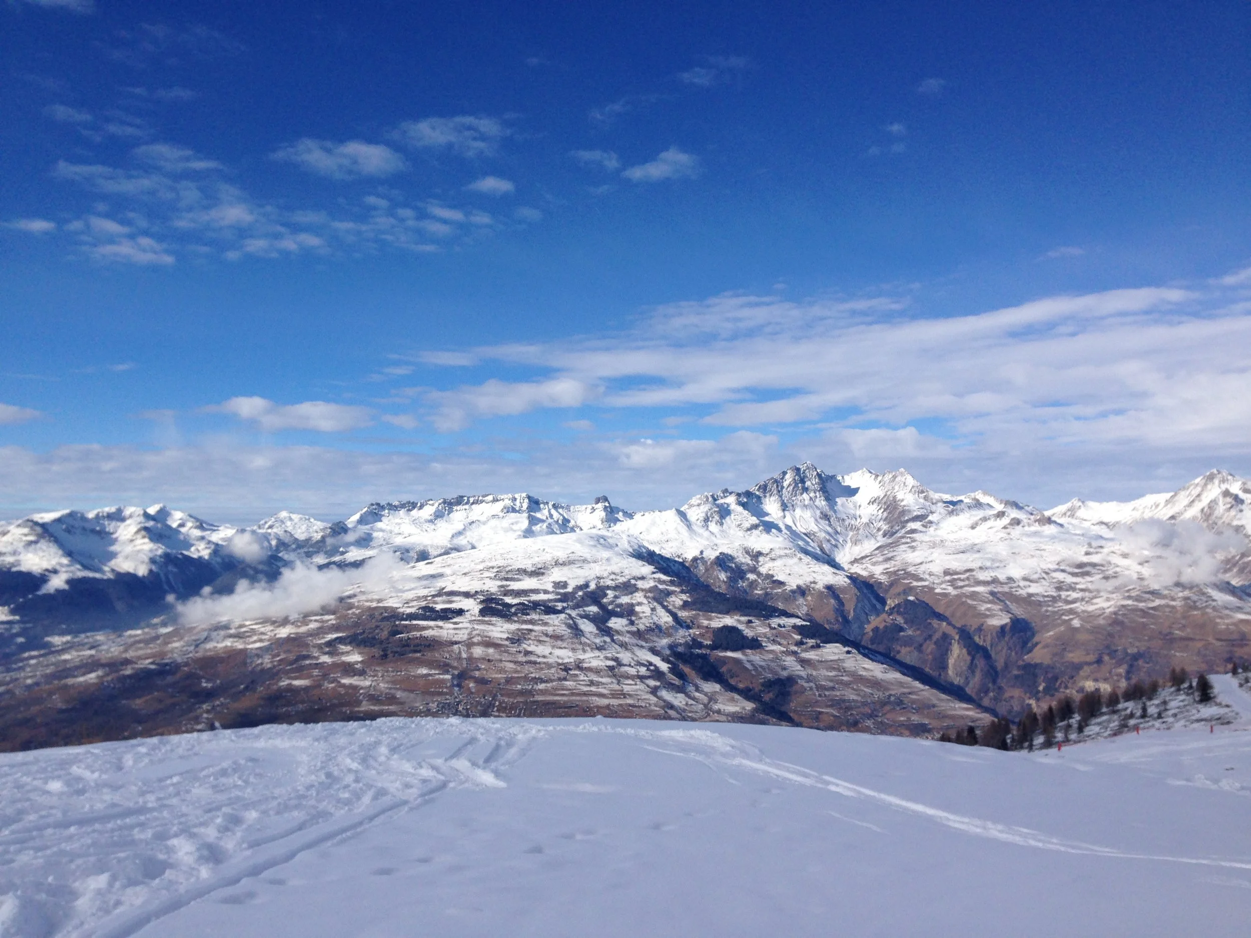 It was very foggy in the morning up until we went in for lunch, but it got a little sunnier near the peak of the mountain after lunch and we decided to test our luck and take a second gondola from where we were up the top of the mountain. It was an excellent choice. When we got to the top, it was bright and so beautiful. The air was full of ice crystals which glistened in the sun, making it look as though we were surrounded by sparkles. There were 360 degree views of the mountains, which were like something out of a movie, so big, snowy and majestic. It sounds a bit cliche to describe them thus, but I really could not believe what I was seeing. Every day I was astounded anew, and had to stop about a hundred times to say, "wait, I need to look at this some more" or "hold on, I'm taking a picture!" We looked out over one side and could see an ice rainbow (like magic!), and once we set out down the run it turned out to be the best one of the day, so good we did it twice. Long, steep, fast and snowy. After that we did the snow park jumps twice, then headed to Arpette, a lodge where a lot of the other students on the trip went after skiing. Loud music, excellent views, drinks. We stayed for about an hour, then skied back to the room.