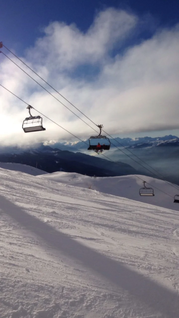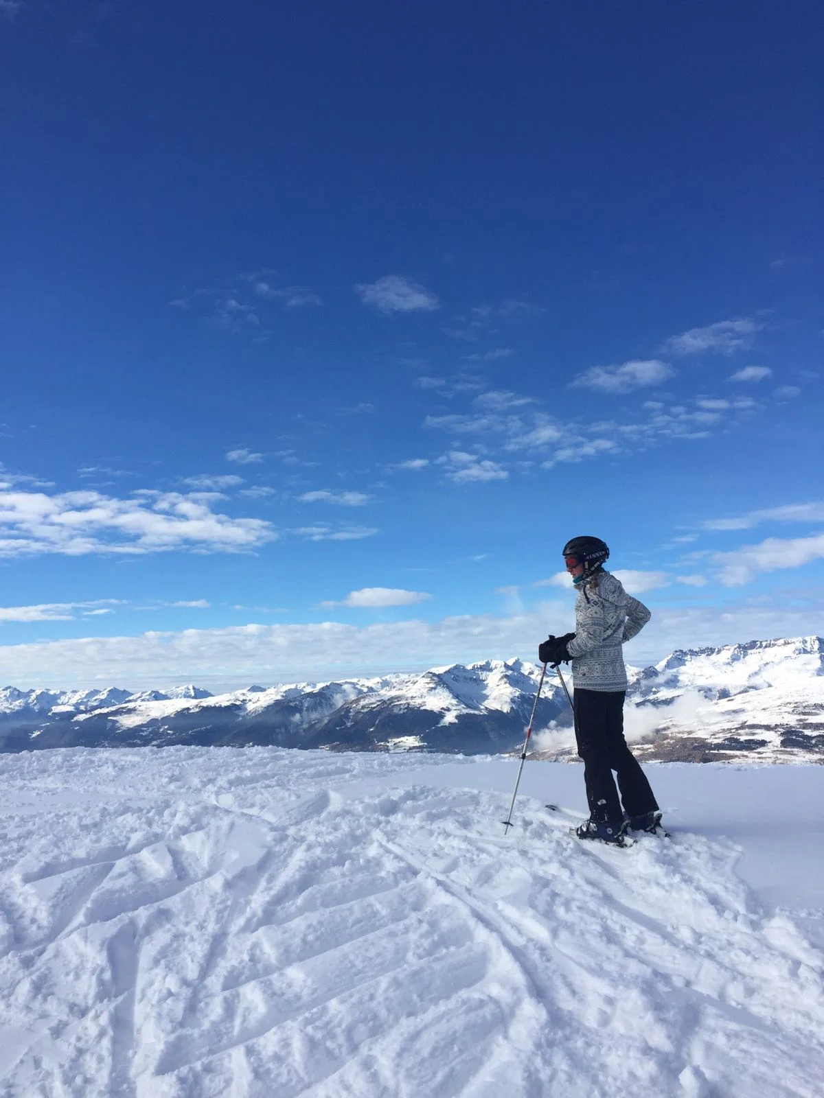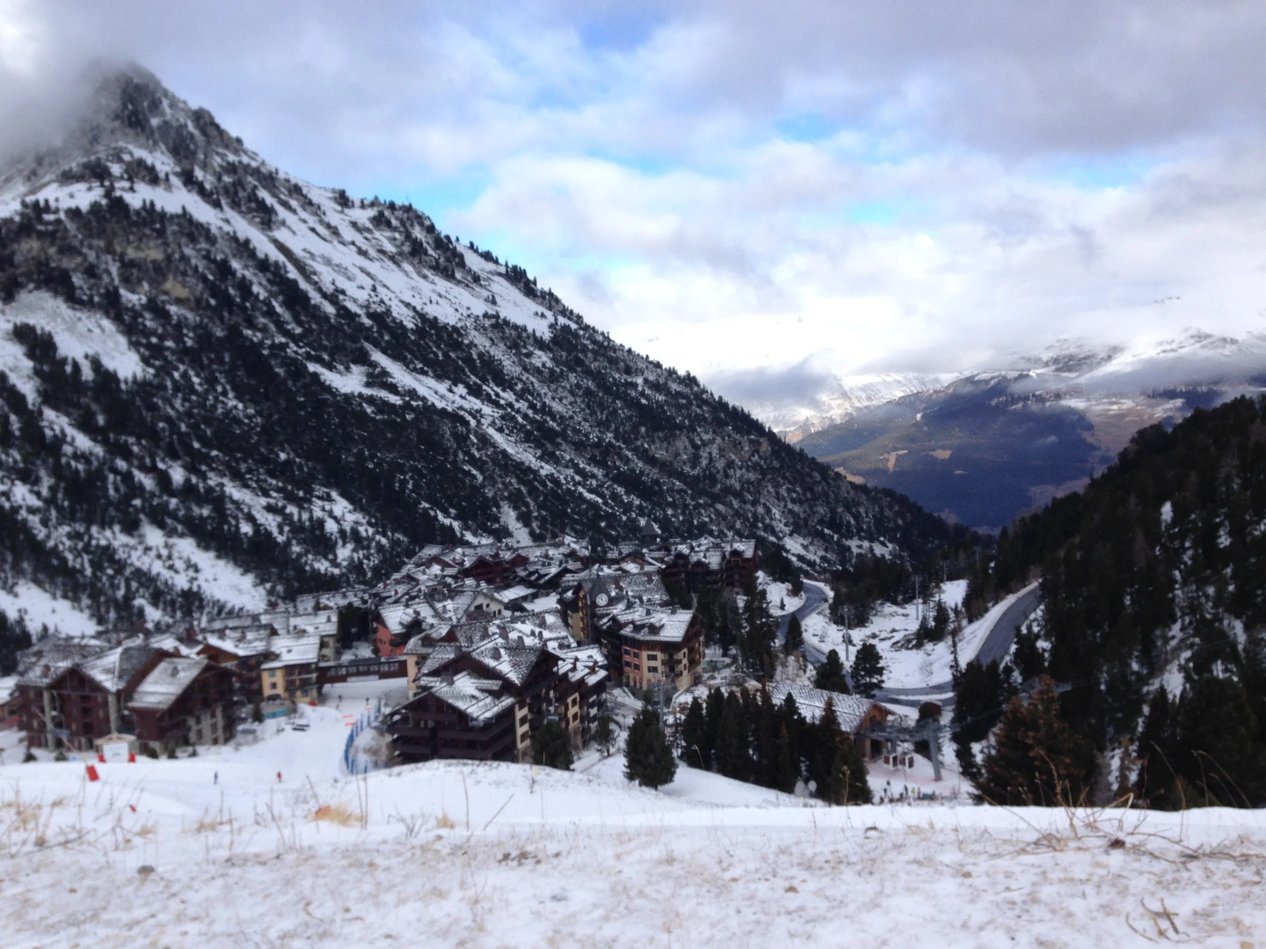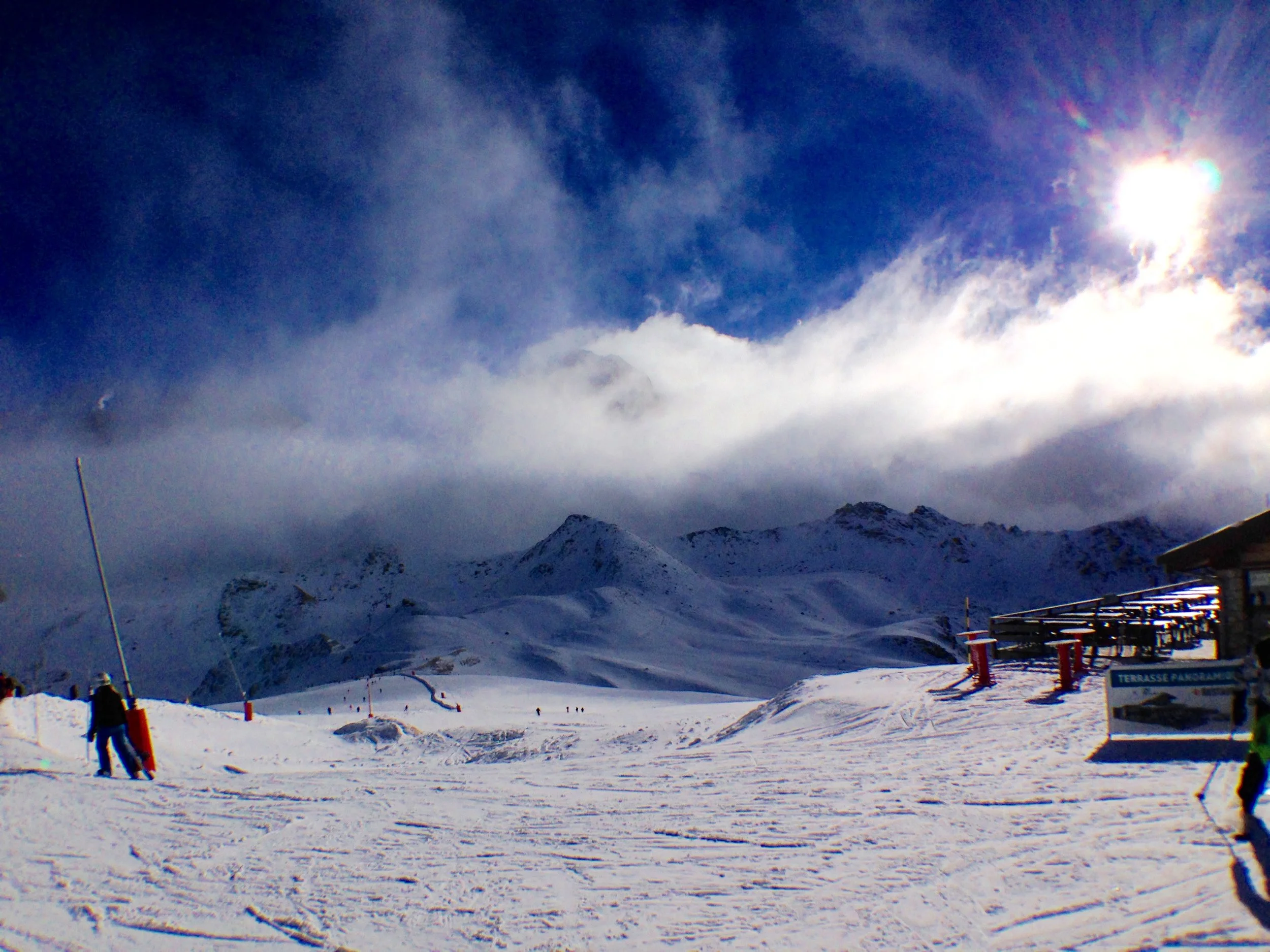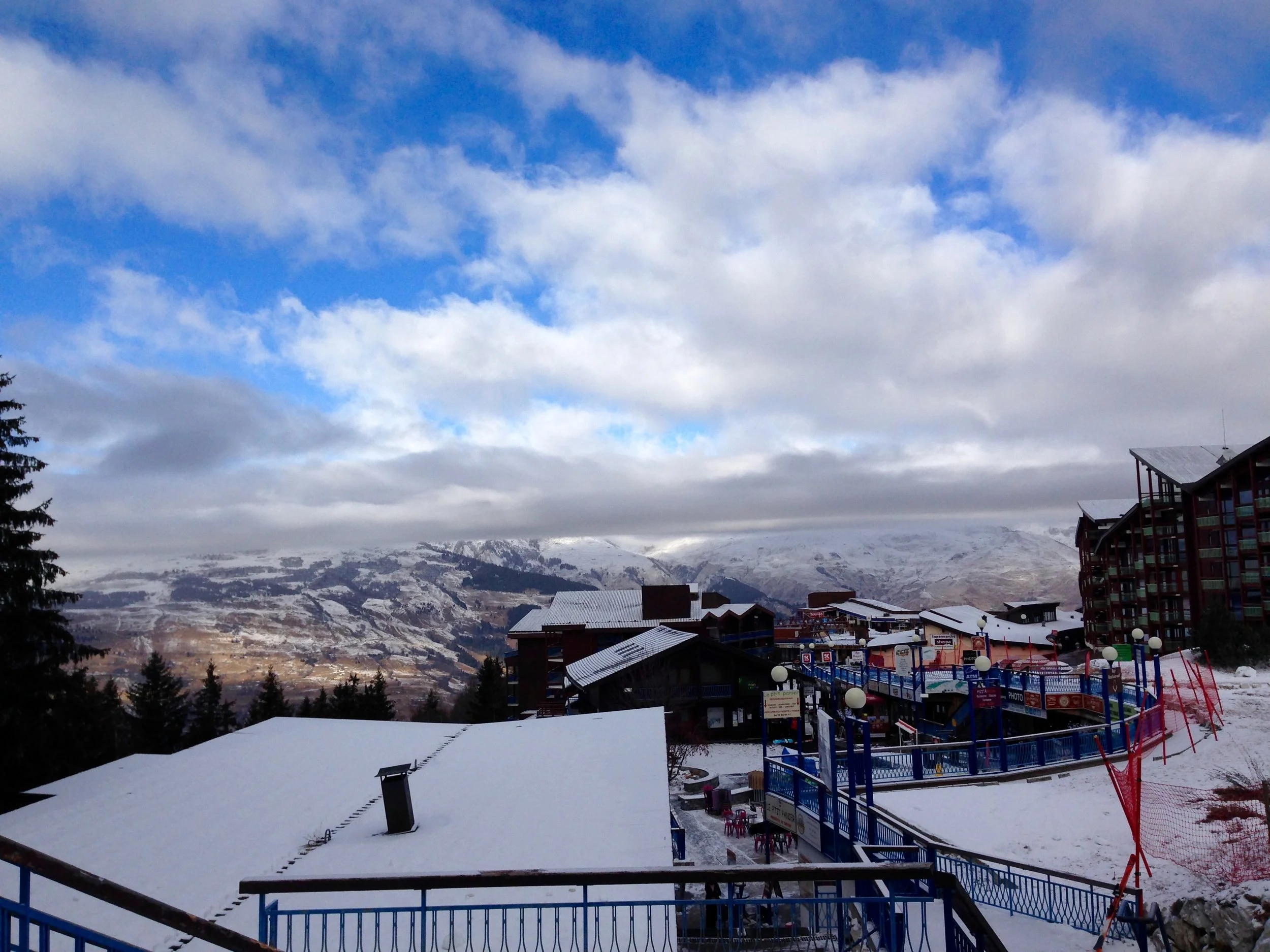 Day 1 at Les arcs: we left the room early-ish to go get groceries for the week and pick up our skis. After a breakfast of fresh pain-au-chocolat and apples we headed out onto the mountain. The lift is right next to our building, only about a 5 minute walk, and we easily made our way to the gondola and into the mountains. We skied a few runs on the far side of the mountain, then skied through 1950, a beautiful little village about halfway down the mountain. We explored a little, did a few more runs, then headed to a lodge for lunch - leftover pizza and, of course, hot chocolate.