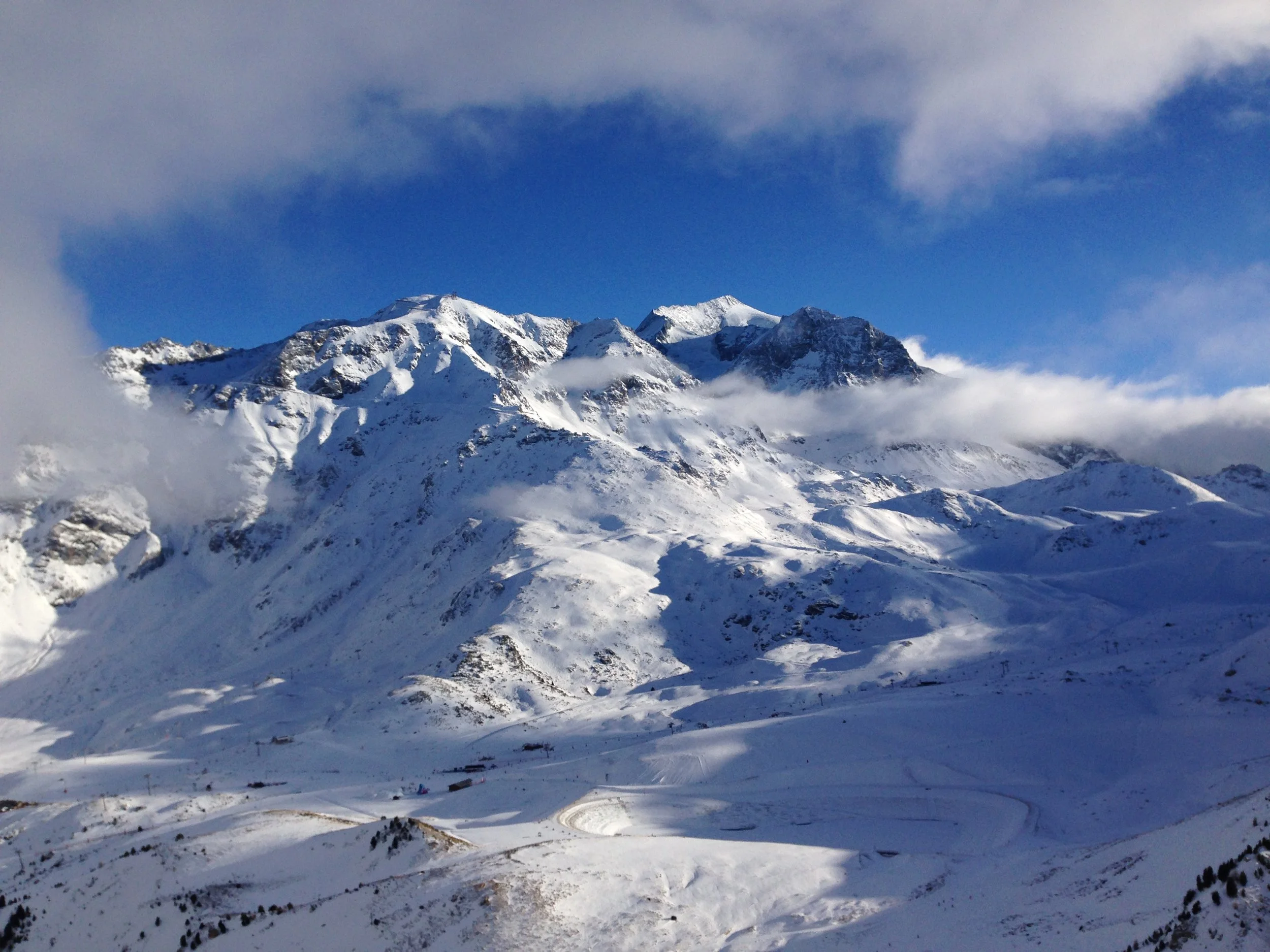 On January 3rd, I left Montreal bound for England and, after a few days spent in London with the cousins, headed to the Eurostar bound for Bourg-Saint-Maurice for a week long ski trip. After 7 hours on the train, we got our first glimpse of the mountains - tall jagged peaks turned pink in sunset. We arrived at Les Arcs ski resort at around 9pm, after a long and freezing trek to the room (the building we stayed in is a maze, all winding halls and dark corners - it was very hard finding anything, especially our room) and at 9:30 went out to find dinner. We were hoping to be able to pick up our skis, which we had already rented, and groceries, but both the ski rental and grocery store were closed by the time we made it there. Instead we found a tiny pizza place (one single table, which we took) with the jolliest French pizza maker singing away to La Rue Ketanou. It was a great first dinner in the Alps.