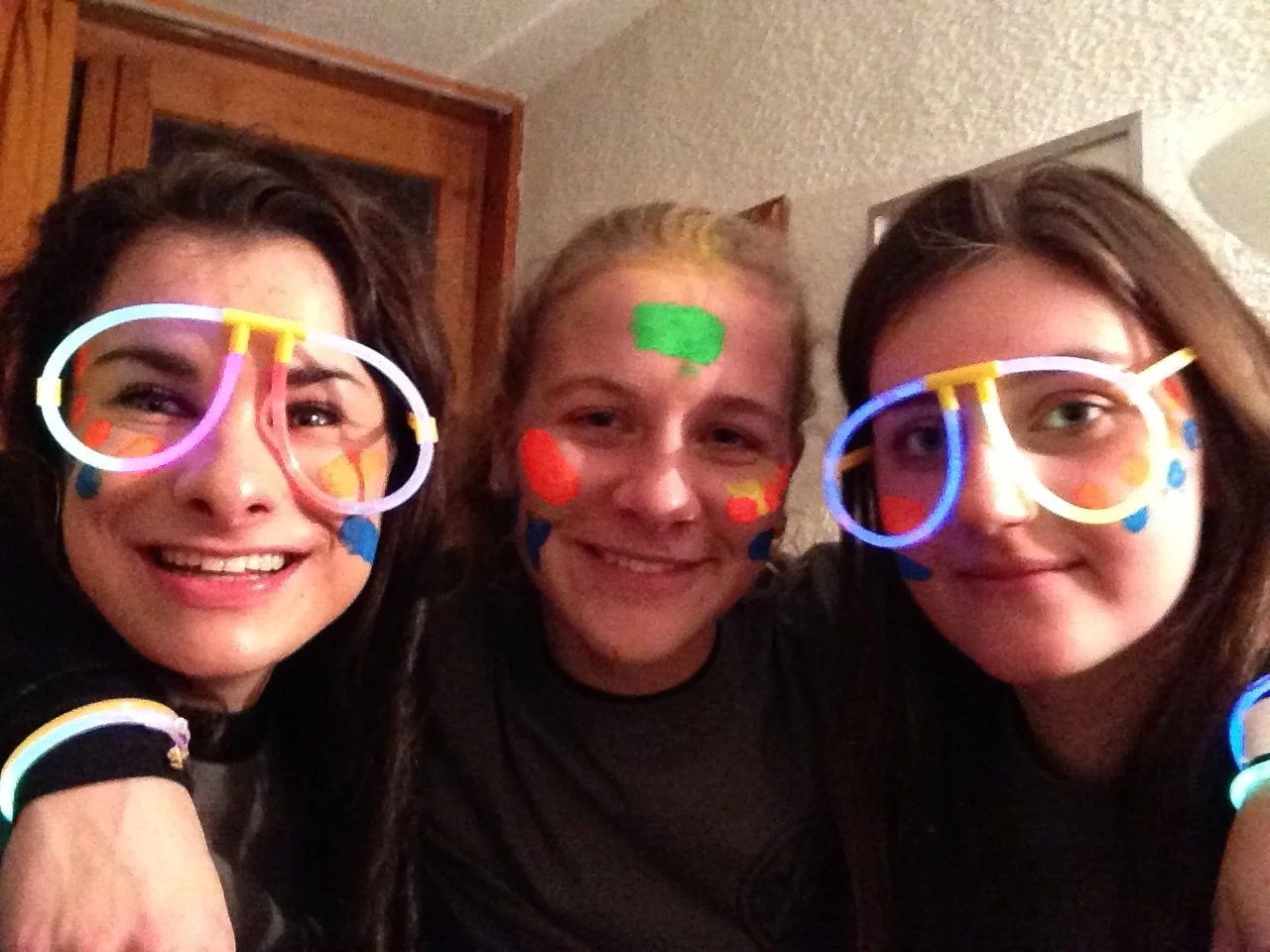 Our second ski day was awesome, so sunny and beautiful, though the snow was a bit icy. We skied with our roommate and two other new friends. Our group of five came from all over: America, England, Scotland, Croatia and Slovakia. One of the things I really love about Edinburgh Uni is how international the students are. The five of us are at about the same level of skiing so it was really fun to ski in a big group - I usually ski with my family, which is great, but skiing with people my age was pretty awesome, especially in such a beautiful place. We went to the very top of the mountain again and skied all the way down, mostly on red runs. In Europe (or at least in France) the runs are ranked differently from in the US. Instead of being classified from green circle (easiest), to blue square, to black diamond, to double black diamond (hardest), they're ranked green, to blue, to red, to black. The black runs were mostly too icy and exposed to ski, so we stuck to reds, which suited us fine - fast and steep but also wide and not rocky. It was great to be able to ski multiple days in a row as I could improve and really feel the improvements day by day. We skied all over the mountain from 10-3:30, stopping for lunch/hot chocolate at chalet Luigi, and ending the day with a couple runs through the jumps in the snow parc and then a couple hours at Arpette. We skied past the sunset over the Alps to end the day.